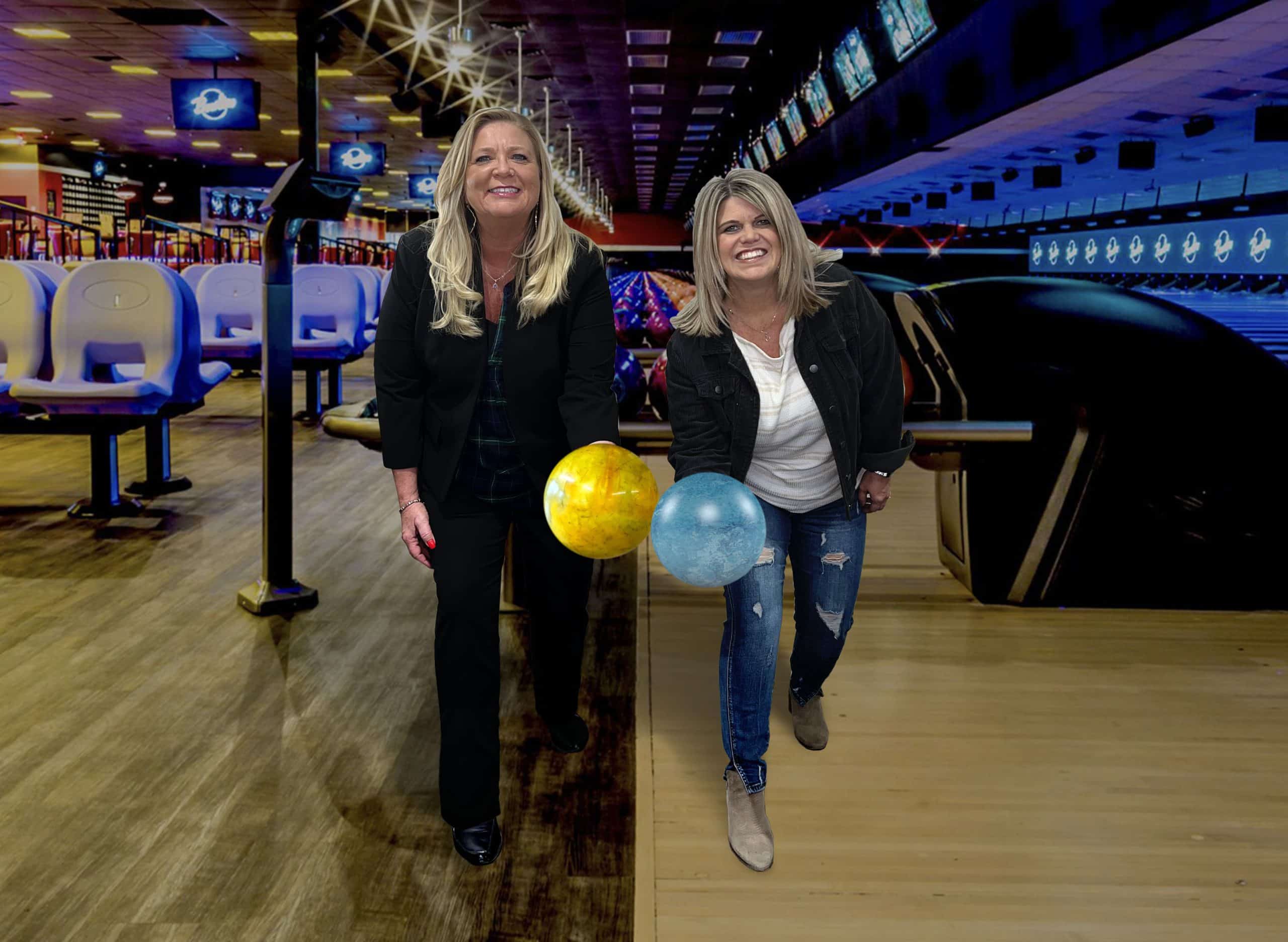 | AATC Community Services Chair, JoAnn Beard, BH Management, and UGM Bowling Title Sponsor, Amy Alvarez, MFI. |