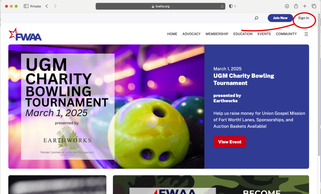 Go to our website at www.livefw.org and click the sign-in button in the right hand corner: