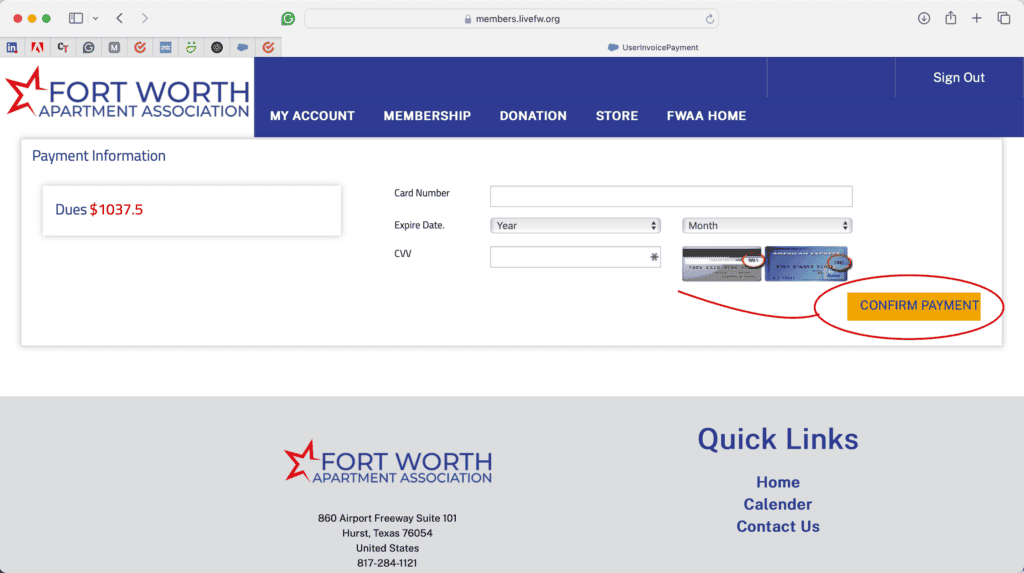 From here you will be taken to the credit card payment process where you can enter your credit card information and confirm your payment: